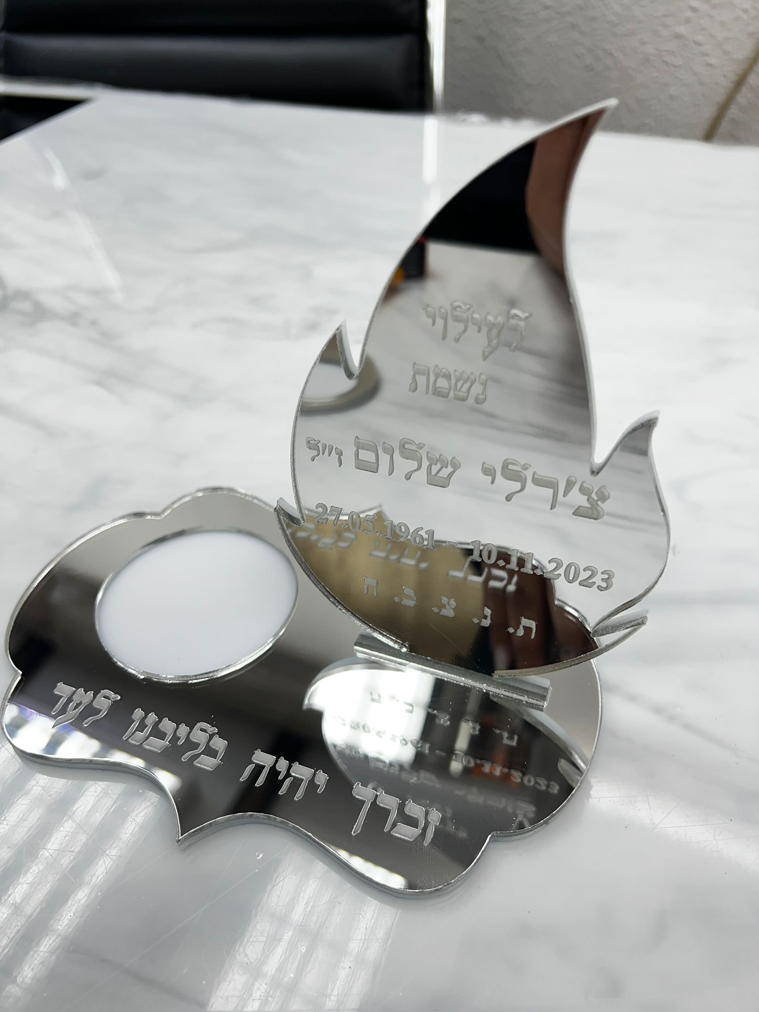 מעמד זיכרון אקרילי בצורת להבה לעילוי נשמת יקירכם❤️