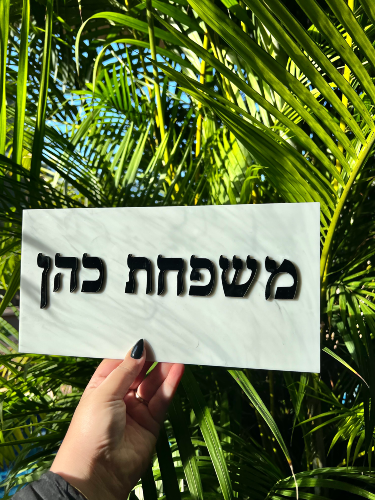 שלט לדלת עשוי מאקריל דמוי שיש עם אותיות אקריל שחור מבריק