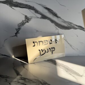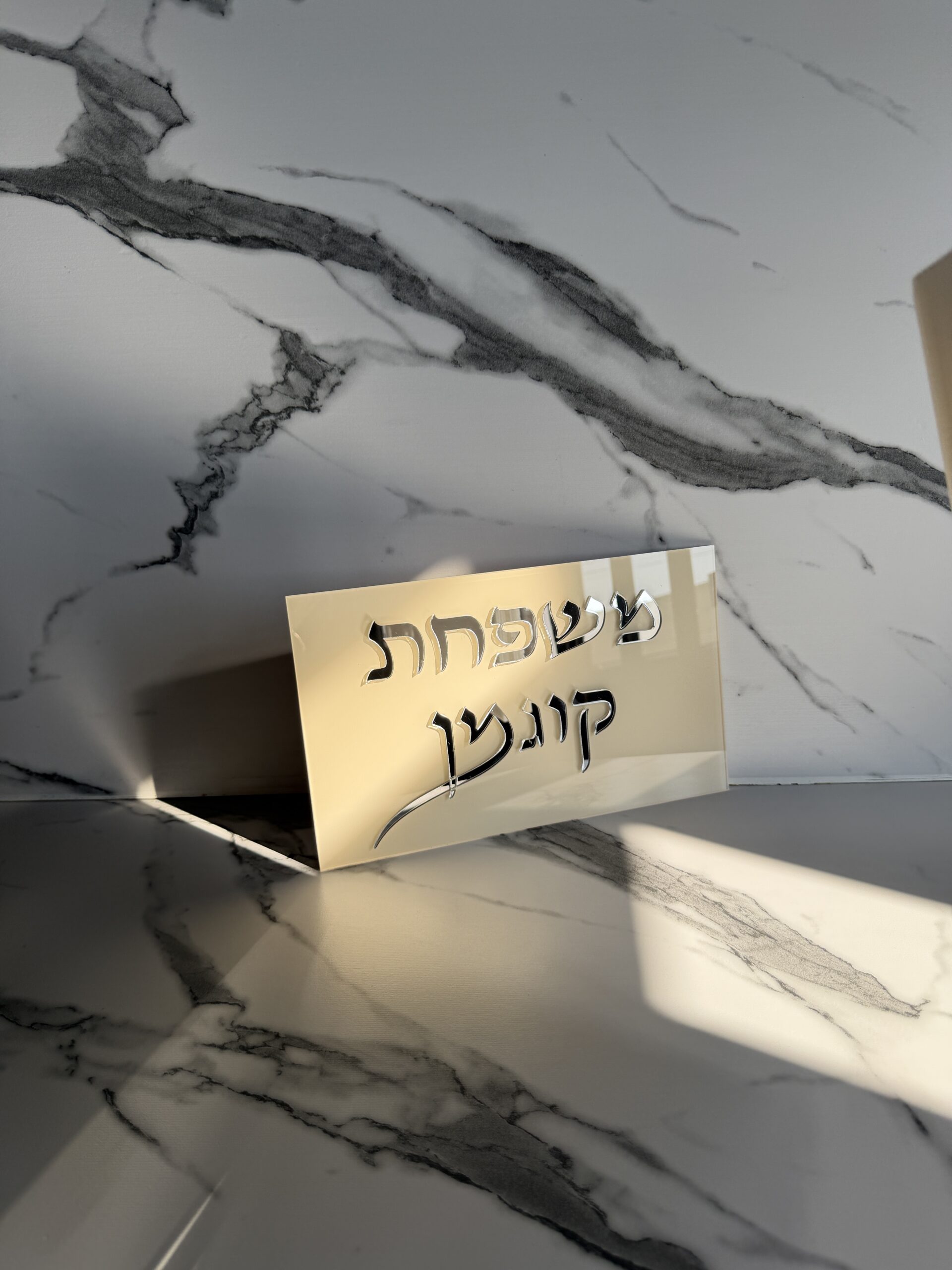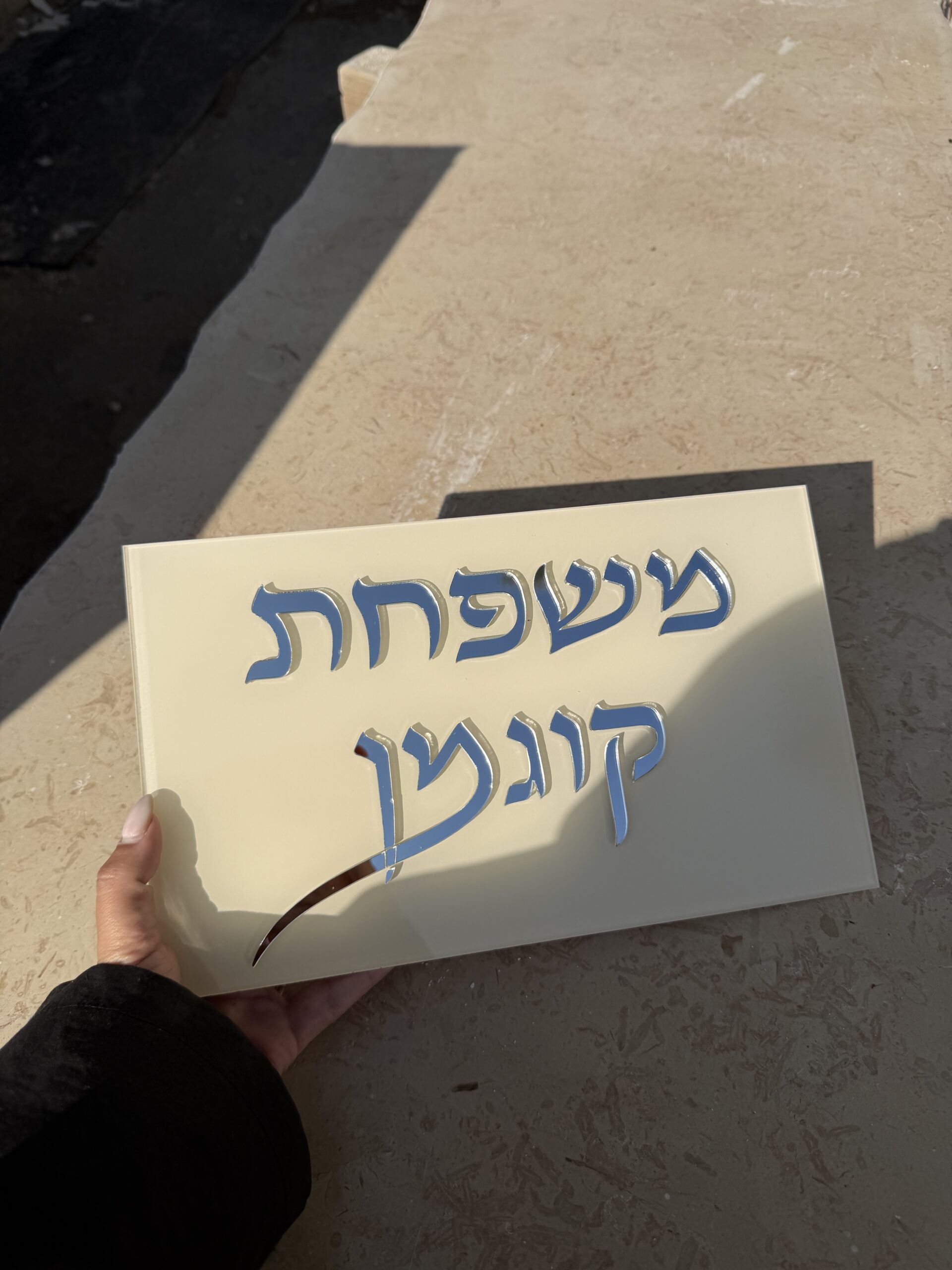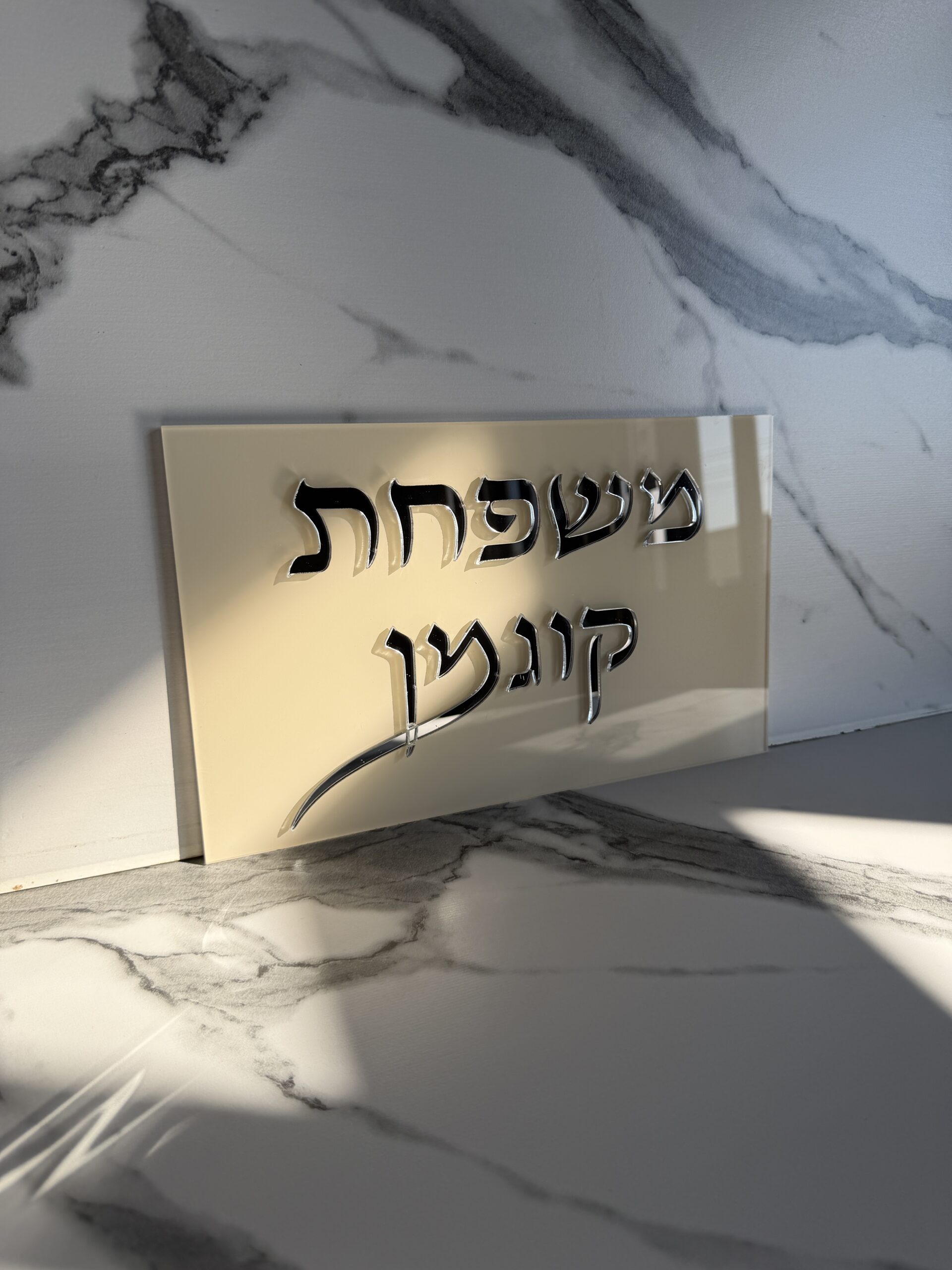 עשוי אקריל 3 מ״מ צבע שמנת אותיות מובלטות מראה זהב/כסף.